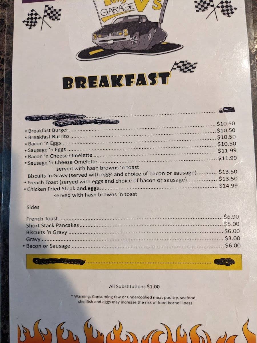 Introducing the Menu at Tony V's Garage